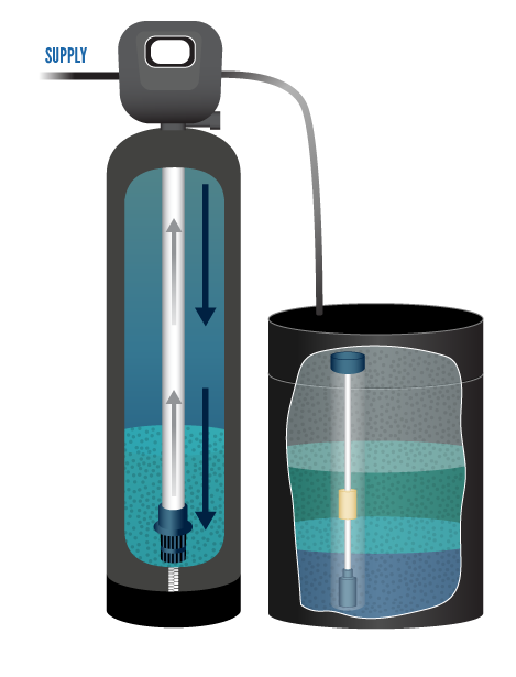 • Upflow, Variable Brining: The system regenerates only when necessary.