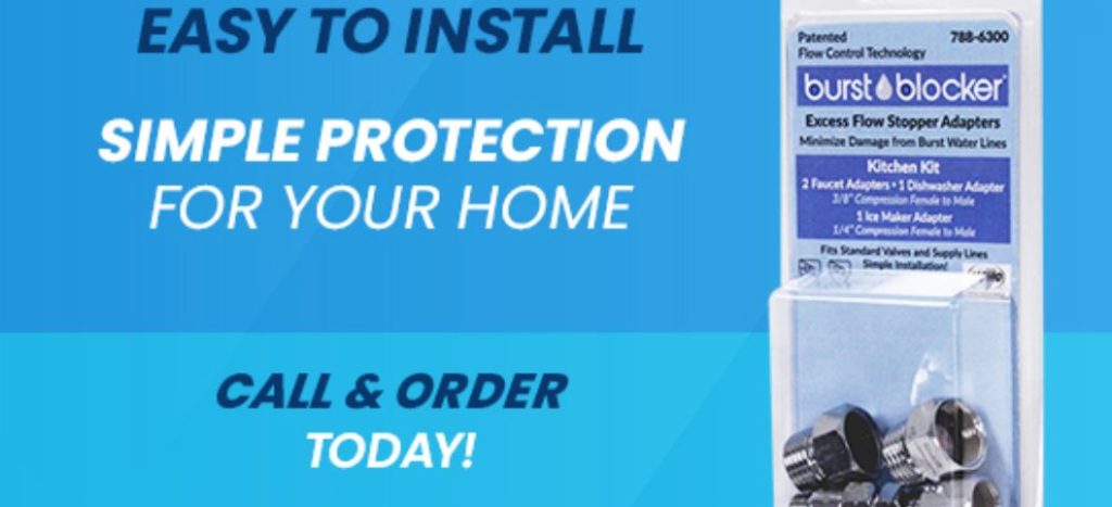 How much would it cost if a water supply line bursts? NEW! Burst Blocker® Adapters minimize damage from burst water lines. With Burst Blocker® Adapters in place, should your water supply line burst, the Burst Blocker® quickly shuts off the water supply to minimize water damage.