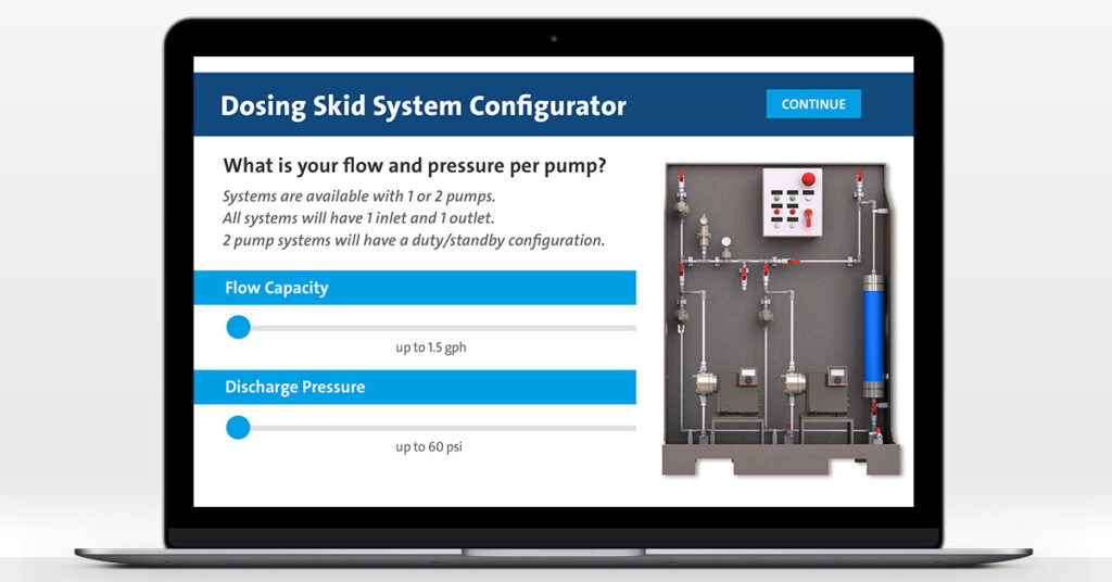 The new Dosing Skid System Configurator is the latest in their innovative digital configuration offerings. It allows you to design and select complete dosing solutions based on straightforward questions about the application and requirements.
