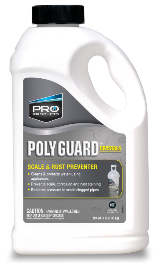 Poly Guard Crystals prevent hard water scale and iron build-up in water systems, equipment and appliances by forming a protective coating on the surface areas with continual exposure to water.