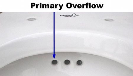 In the unlikely event that the primary overflow holes are obstructed, the water then continues to rise until it enters the holes under the rim where it travels through a hidden inlet into the secondary drain system and then drains into the sanitary main, once again protecting from an overflow. This amazing system offers 2 means of protection against overflow!